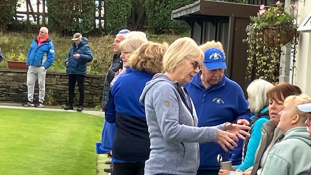The new Cowcliffe host green seemed to meet with everyone's approval with a wonderfully prepared green, a range of hot and cold food offerings, a warm welcome and the sun shone as well. However the day was soured by one of the bowlers wearing the wrong footwear and leaving some big marks on the previously immaculate green. It seems that one bowler was wearing heavy footwear totally inappropriate for a bowling green and unacceptable. Checks are going to be made in future and bowlers not wearing flat shoes will not be allowed on to the green.