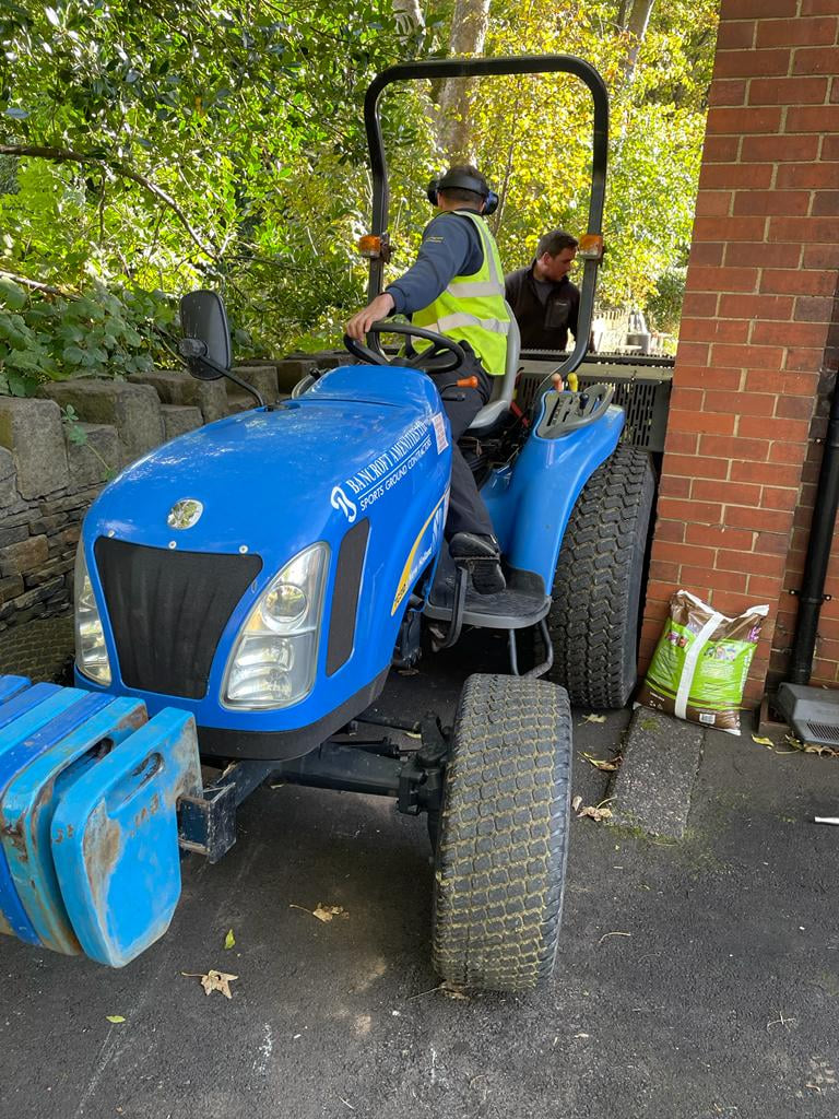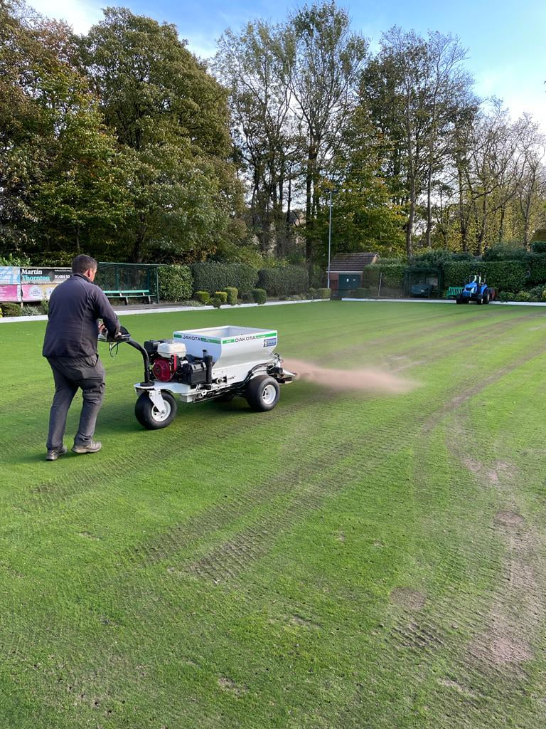 Lindley BC green has been Verti-Drained and top dressed this week following a tight squeeze getting the machinery in and onto the green at first as the tractor was 5' 6" wide and the gap was 5' 7" it was a bit tight but all was well in the end. This important function carried out on the green should improve the drainage next year. See the photo record below and then watch the video to see and hear this device punching 10" deep holes into the green.