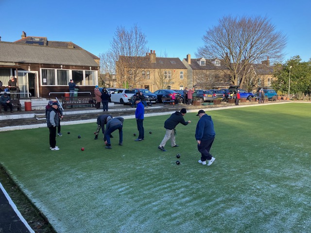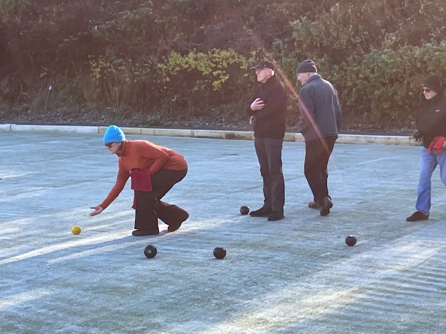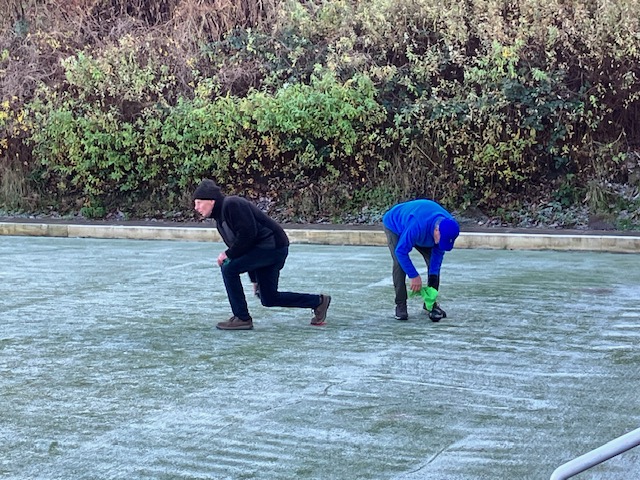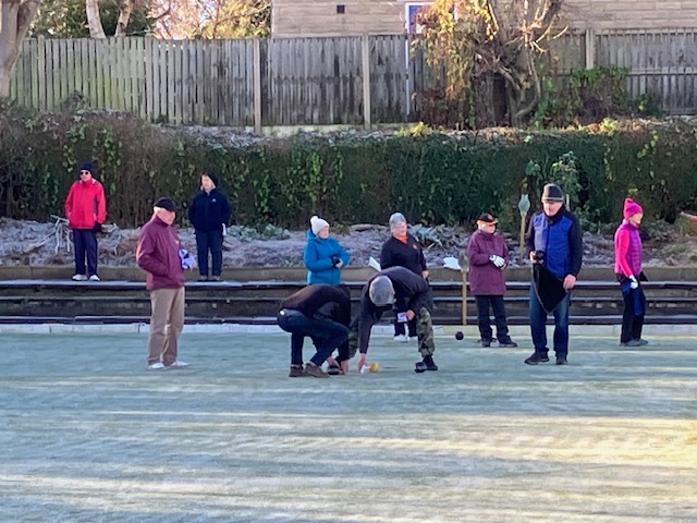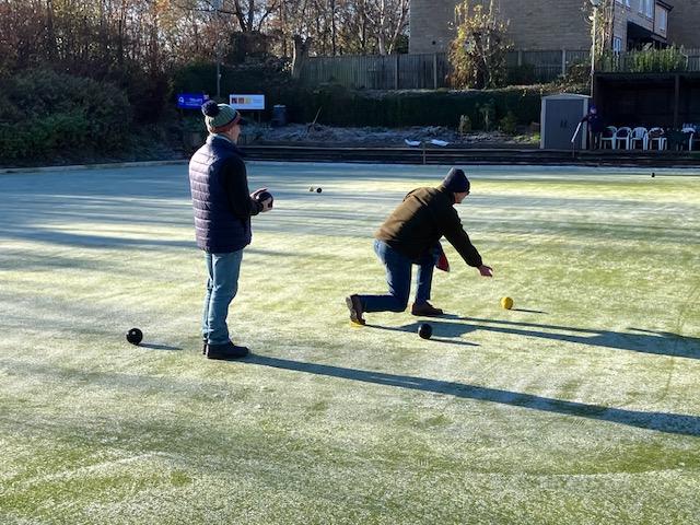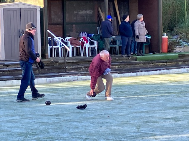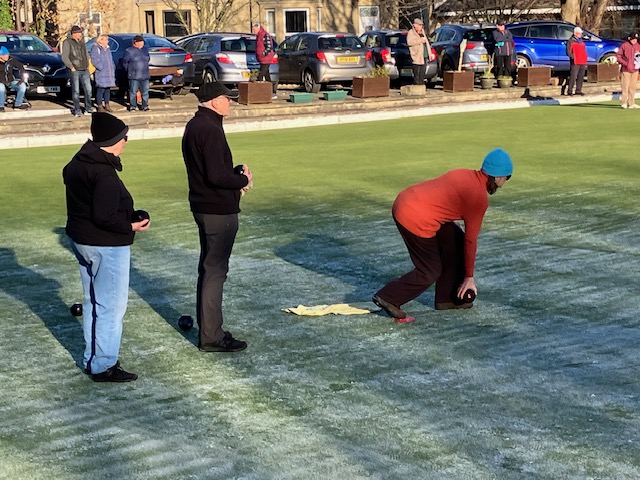 Half of the Springwood green was frost-affected making every end a stroll into the unknown. The woods went further on the white stuff as they skidded to a halt generally well past the jack. Most bowlers preferred to mainline the non-affected half but as bowlers became more desperate for points they resorted to dropping anywhere on the frosty ends in the hope that a lottery win might follow.