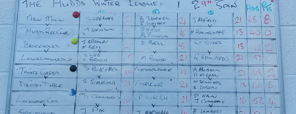 Despite the best efforts and an 8-0 win against bottom-of-the-table Hudd Rec Club A for New Mill B it is Denby Dale who look to win the Division 3 title by collecting 3 points or more from their final fixture next Wednesday. Denby Dale are already promoted which is the only thing settled so far this season in Division 3. The Dale go up against Springwood A who are desperate for the points to save themselves from relegation so they will be going all out for a good result as well.